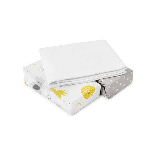 FlyIdeas 2 Fitted Sheets Set + 1 Waterproof Mattress Protector, 3 pcs - 100% Cotton